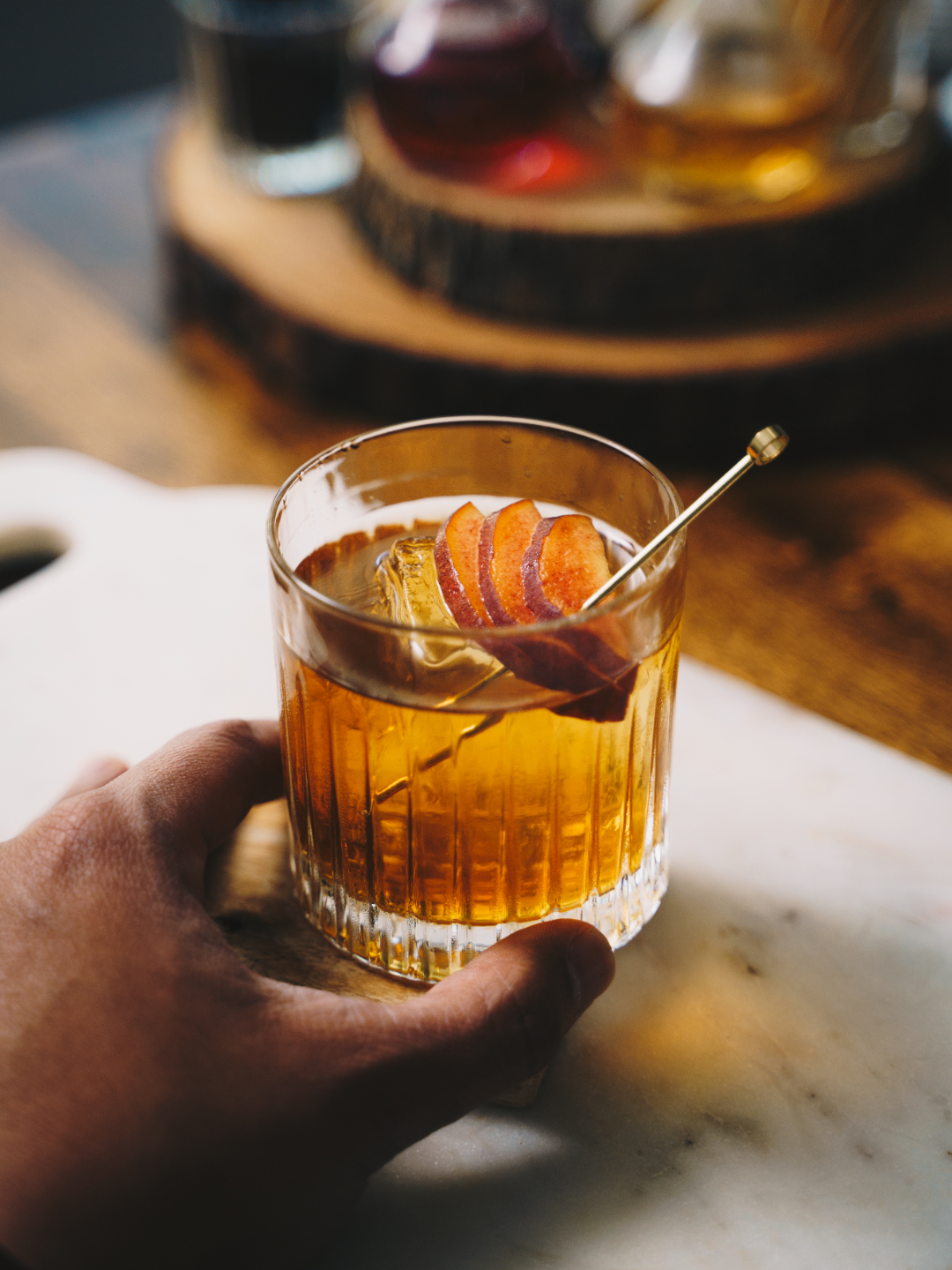 Combine all ingredients except the garnish in a mixing glass with ice. Stir, strain and pour the mixture over a large ice cube and garnish with a dehydrated orange wheel. Serve and enjoy! To plus this recipe up, feel free to play with the garnish. You can also add a cinnamon stick for a bit of festive flare.