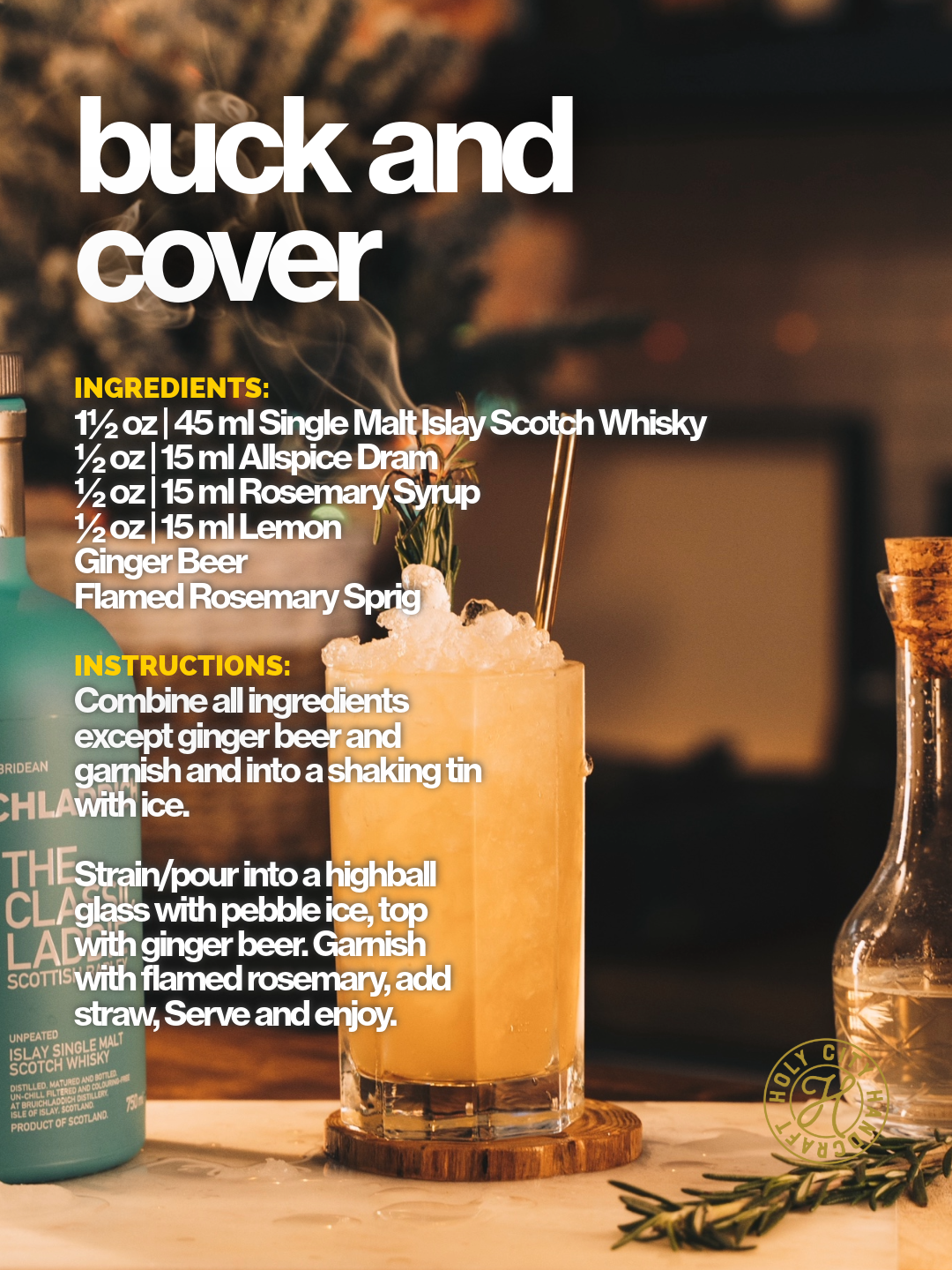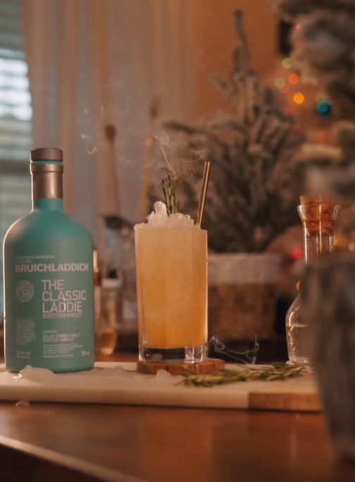 I’ve created a cocktail thats sure to warm you up and cool you down at the same time. This takes The Classic Laddie, an unpeated, scotch whisky, combined with the flavors of rosemary and allspice with an aroma of smokey rosemary to create a cocktail that is as refreshing as it is smokey. Anyone can make this recipe, so make sure to give the gift of The Classic Laddie this holiday season by heading to the link in my bio!