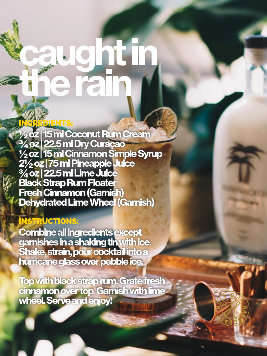 Combine all ingredients except garnishes in a shaking tin with ice. Shake, strain, pour cocktail into a hurricane glass over pebble ice. Top with black strap rum. Grate fresh cinnamon over top. Garnish with lime wheel. Serve and enjoy!