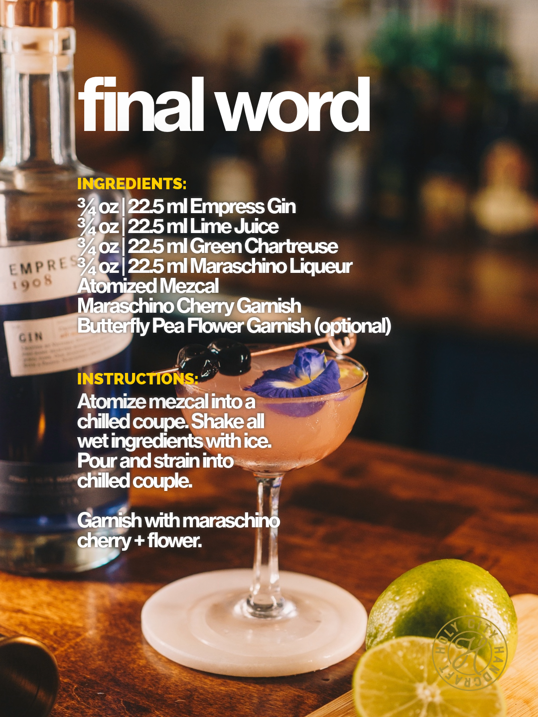 Together with my friends over at empress1908gin, we put together a spin on a traditional last word using Empress Gin with a slight Mezcal rinse it give it a touch of smokiness to compliment the herbaceous qualities of this cocktail. Hope y’all enjoy this one!