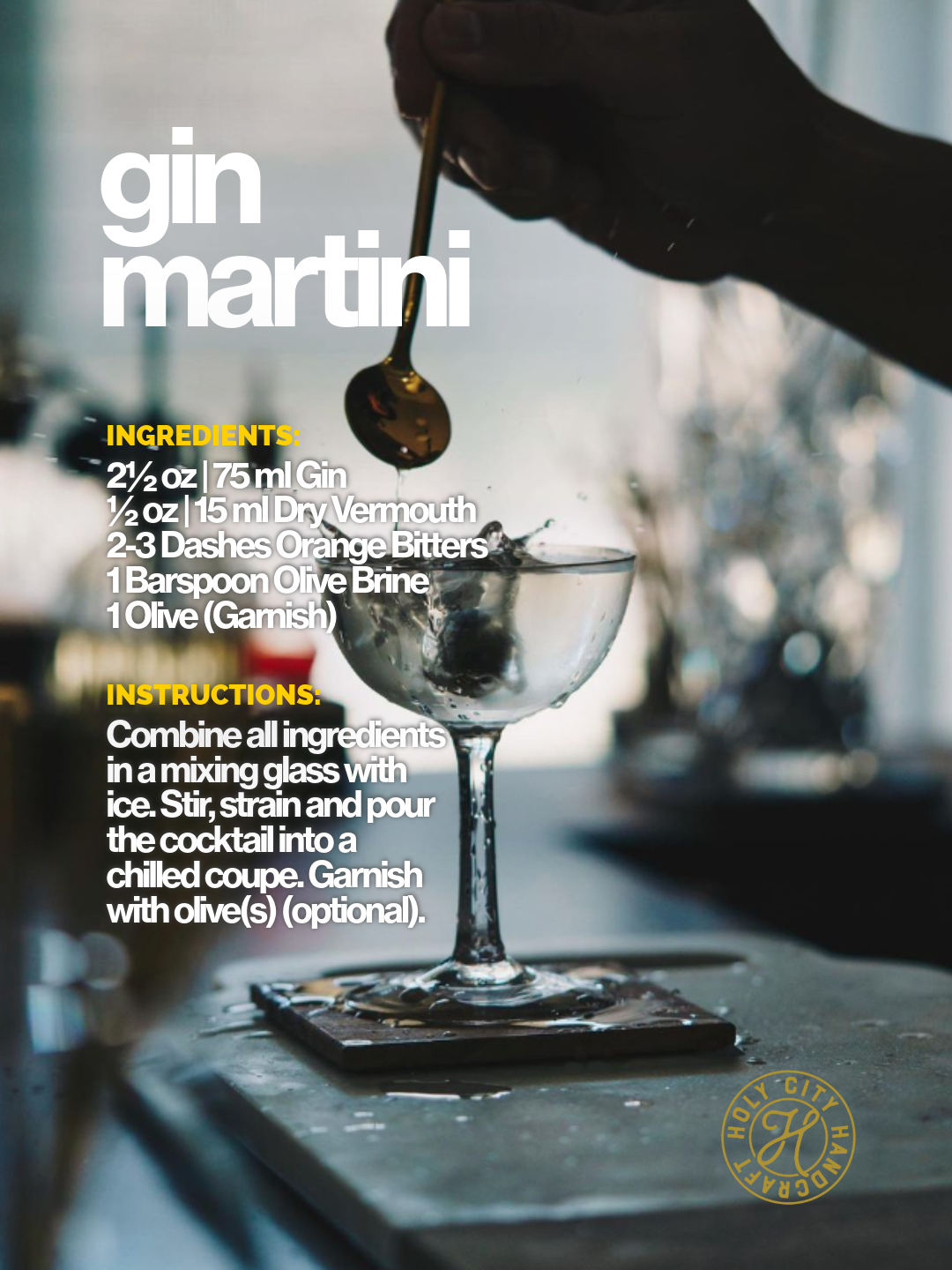 Combine all ingredients in a mixing glass with ice. Stir, strain and pour the cocktail into a chilled coupe. Garnish with olive(s) (optional).