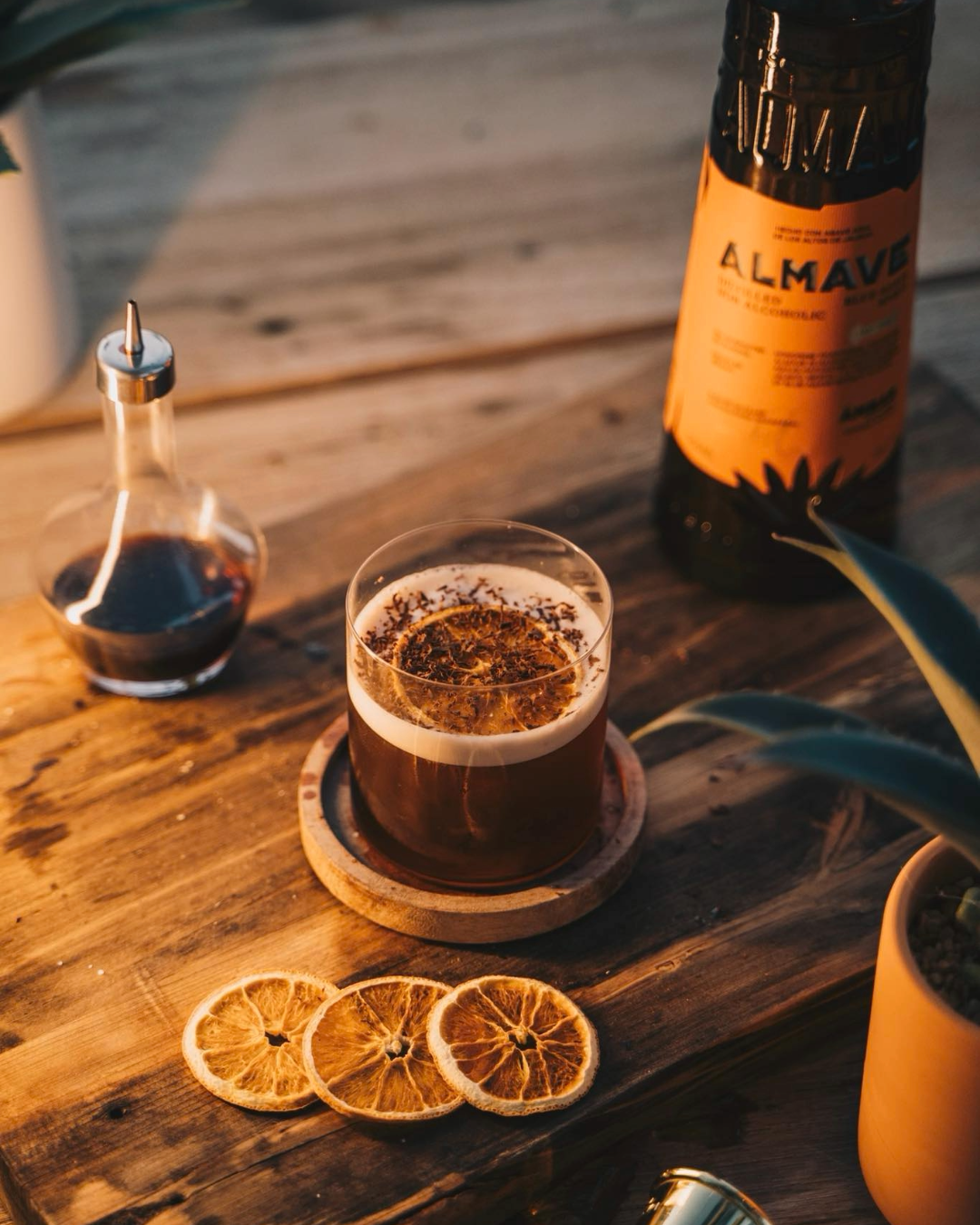 A no-ABV take on the classic Carajillo with depth and heat. Almave Ambar provides body, espresso adds structure, and chocolate, orange, and habanero build controlled intensity. Best served cold after dinner.