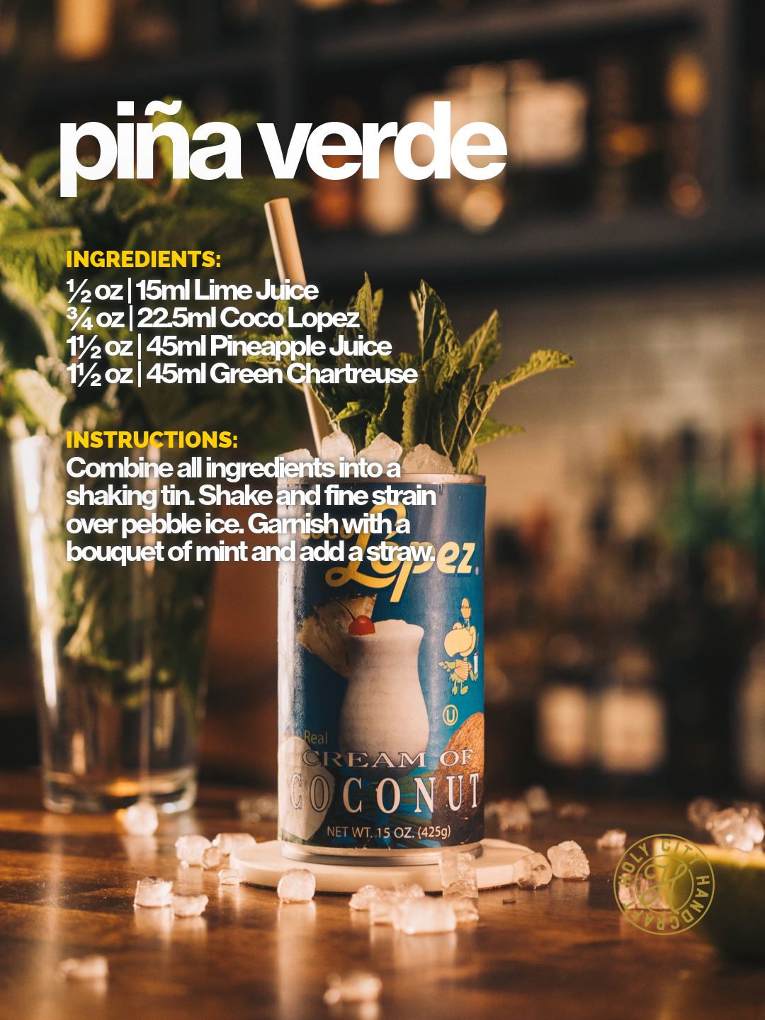 Some people are out there hoarding their Green Chartreuse and some of us are using it as a base spirit 😂 This one is like if a Piña Colada and a Chartreuse Swizzle had a baby and served it over crushed ice in a Coco Lopez can. A big thank you Erick Castro-Diaz (@hungrybartender) for this spec. Absolutely incredible.