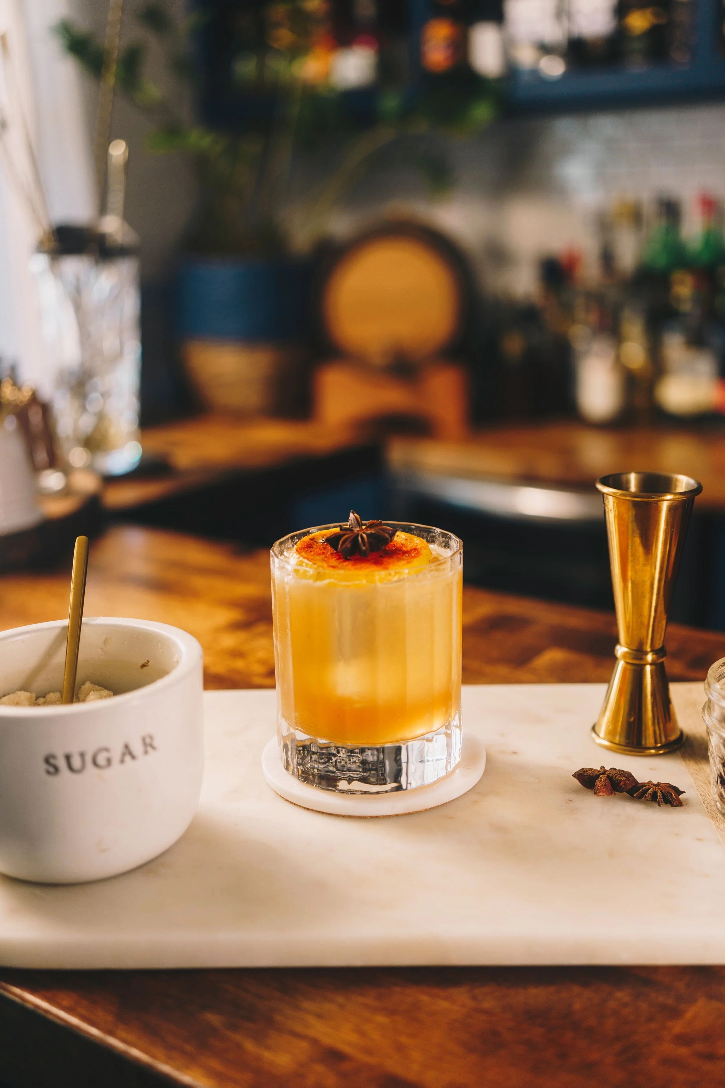 A floral-leaning Negroni with a lighter profile and clean bitterness. Italicus softens the gin, while toasted pink peppercorn adds subtle spice and structure. Best served cold and stirred down.