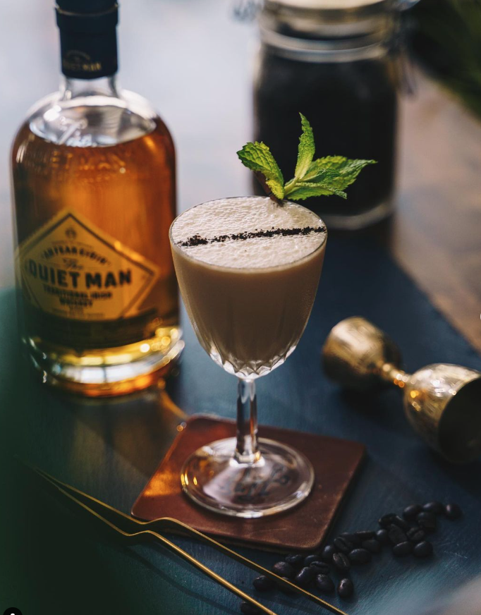 It’s like an Irish Coffee, but not.🍀☕️ This enhanced version of the classic is still very easy to make and only takes a few more ingredients to execute. Chicory and coffee have always been a match made in heaven but together with an eight year old Irish Whisky like thequietmanwhiskey it just brings it to a whole other level. The notes of sweet vanilla and oak that is imparted from the barrel is on full display in this version of Irish coffee, only to be accentuated with a salted caramel foam to balance out the bitterness from the coffee.