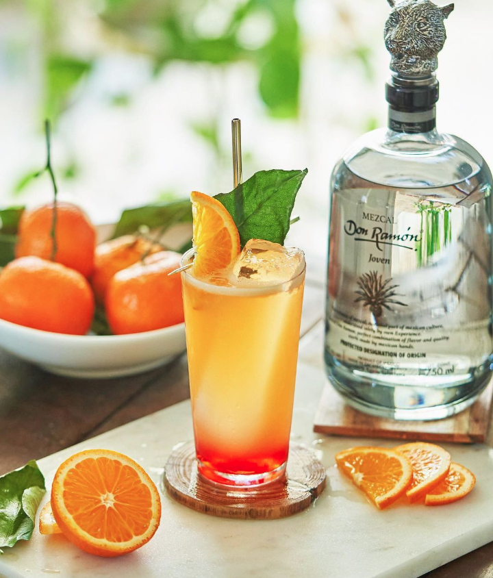 I created an easy spring cocktail utilizing Mezcal Don Ramón and fresh satsuma orange juice. Combined with the tartness of lemon, sweetness of honey and bitterness of Campari to compliment the smokey, but fruit-forward mezcal. Cheers y’all
