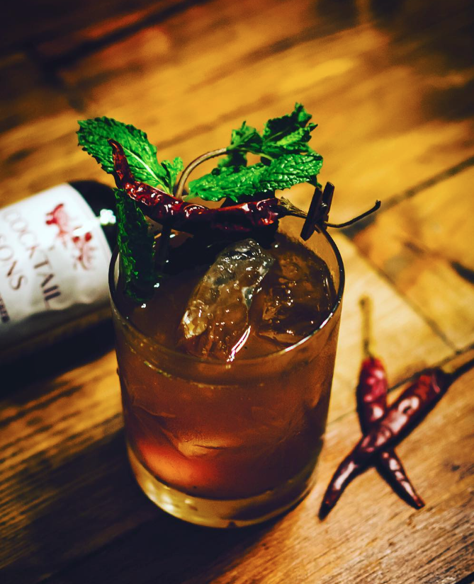 Combine all ingredients except the the mint and arbor chile in a shaking tin with ice and shake vigorously for 15 seconds. Pour and strain over cracked ice. Garnish with a freshly smacked mint sprig and arbor chile.