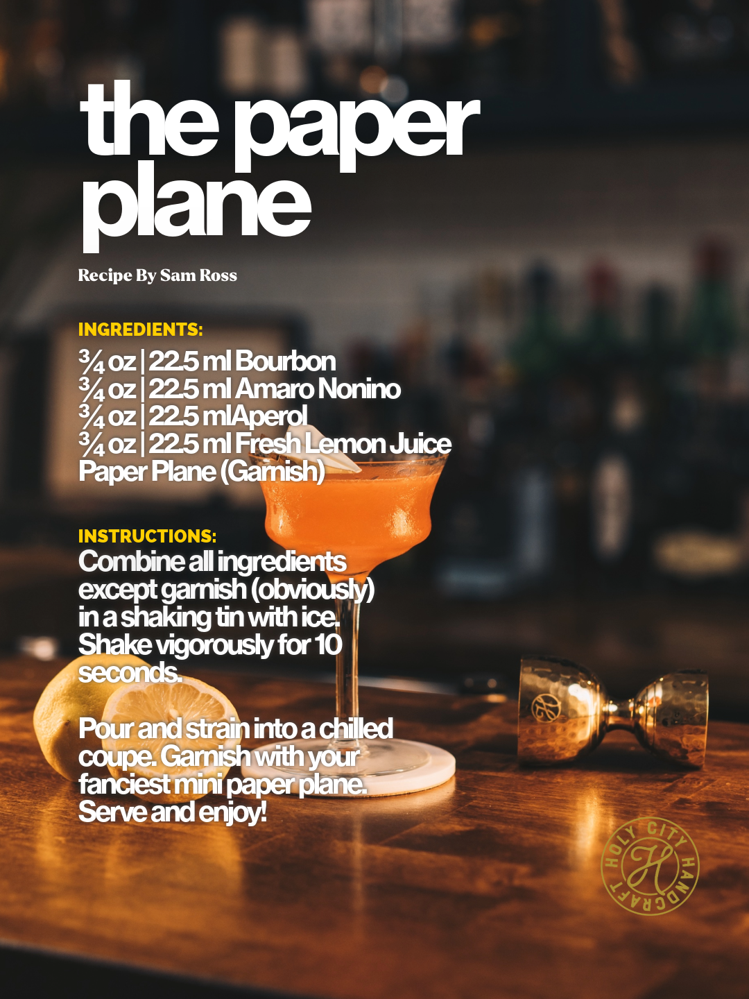 …did you know the Paper Plane was a riff on The Last Word - and it was named after the MIA track… yeah… that one, from Pineapple Express 🤯 Anyway, its one of my rediscovered favorites to make, equal parts and perfect for the summer.