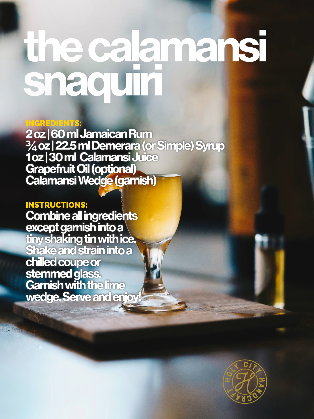 …lovingly nicknamed a ’Snaquiri’. This was the most requested cocktail for this #TinyCocktail series so I had to oblige. This rendition is made with fresh calamansi juice which is near and dear to my heart (since I am Filipino and all). If you haven’t had calamansi, I describe it as a cross between a bitter orange, lemon and yuzu. The addition of that grapefruit oil adds more of that citrus aroma but is optional.