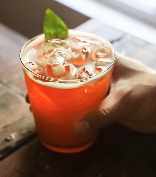 Combine all ingredients except ginger beer in a shaking tin with ice. Shake vigorously and strain into a rocks on Collins glass with ice. Top with ginger beer. Garnish with a fresh mint leaf. Serve and enjoy!