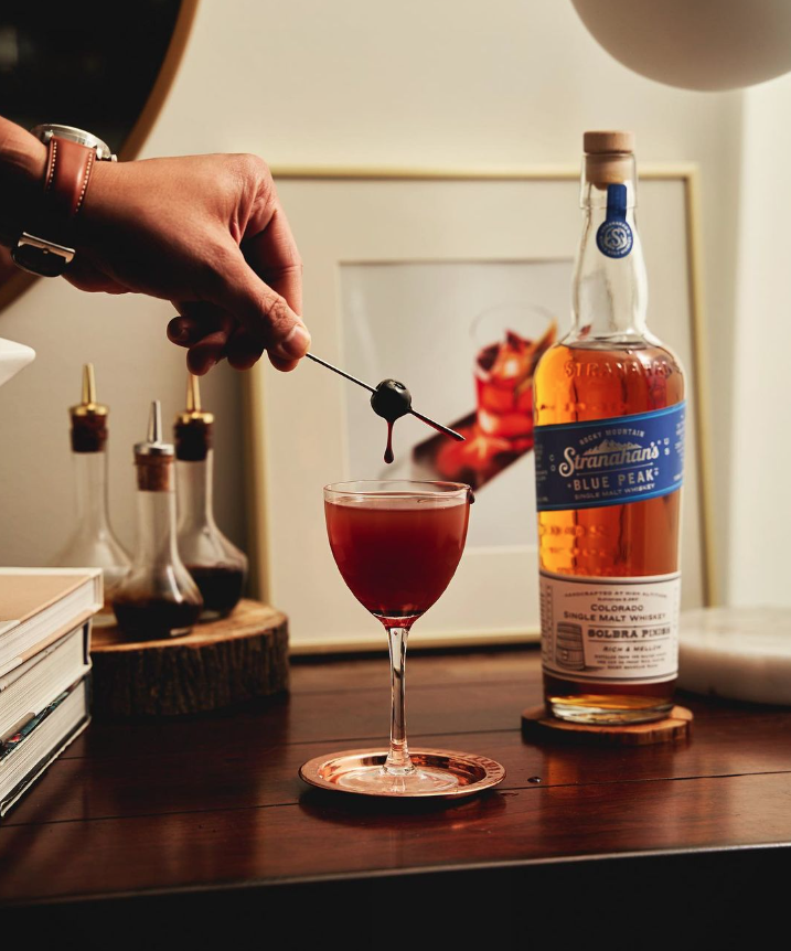 Together with stranahans, I’ve created a seasonal recipe made with their new Blue Peak American Single Malt Whiskey. This Manhattan riff features all the flavors of this single malt, paired with a biscotti cookie and cocoa bitters, making for an easy and well balanced sipper. Cheers y’all!