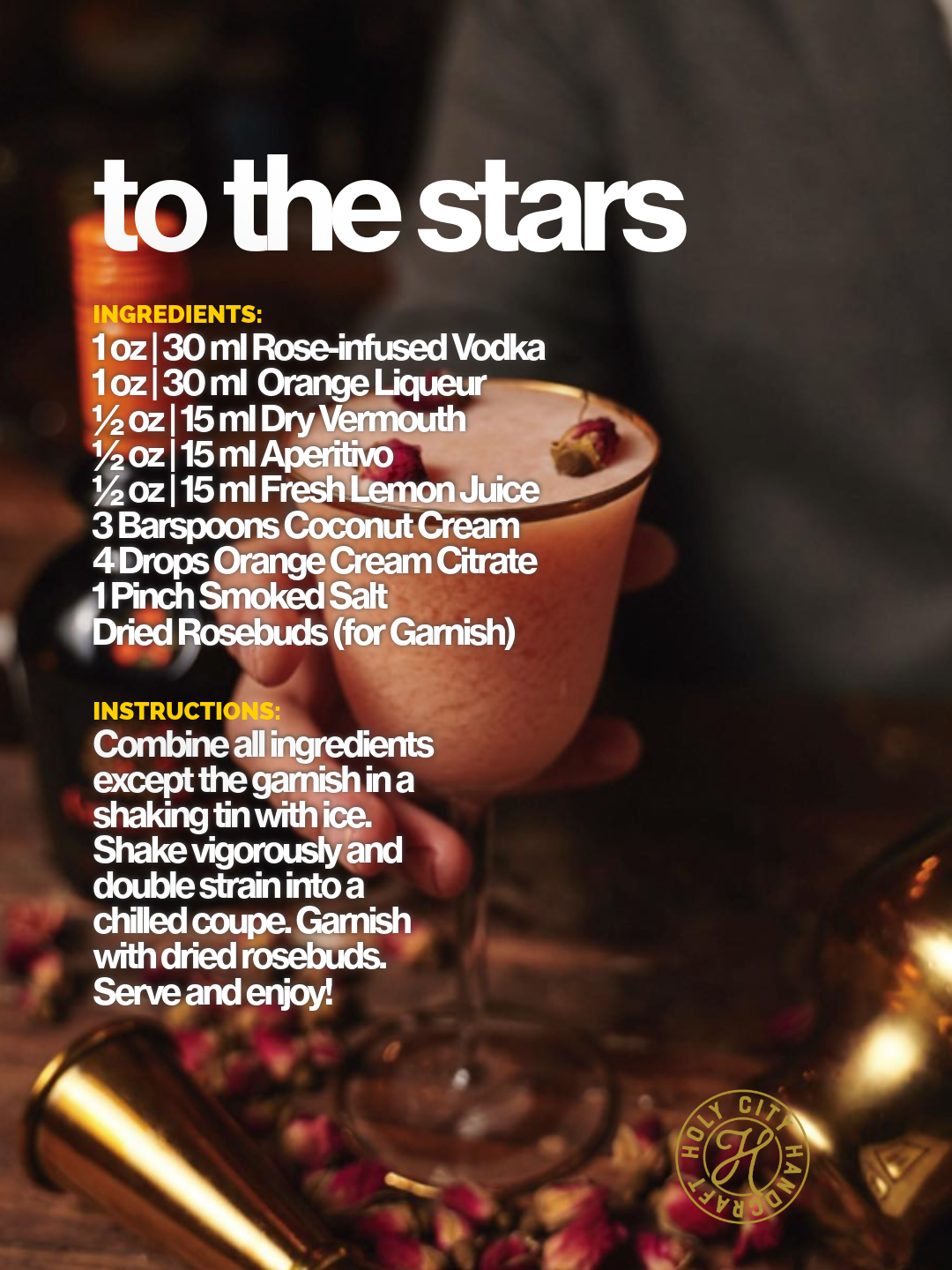 Combine all ingredients except the garnish in a shaking tin with ice. Shake vigorously and double strain into a chilled coupe. Garnish with dried rosebuds. Serve and enjoy!